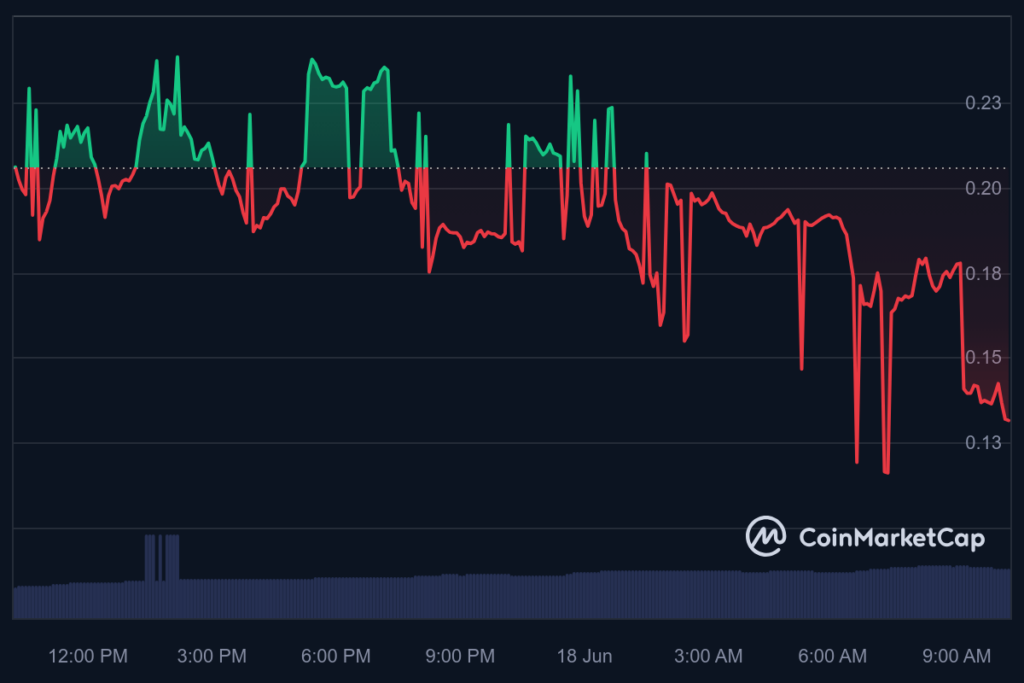 For now, DADDY’s price of $0.1281 suggests a 37.70% decline in the last 24 hours, adding up to the accumulated drop of 45.93% since the launch of its trading metrics on the CoinMarketCap platform, according to the most recent data retrieved by Finbold on June 18.