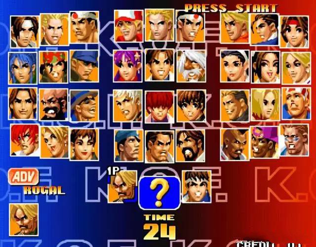 《拳皇95》選人就比較自由了,可以選擇隊伍也可以單獨選人。由于人氣不高,三位運動員被取消了,換成了八神隊