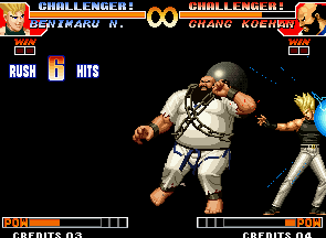 瀕死狀態:當角色的體力低于八分之一,體力的顯示便會不停閃爍,在這種狀態下角色可無限次使用超必殺技。
