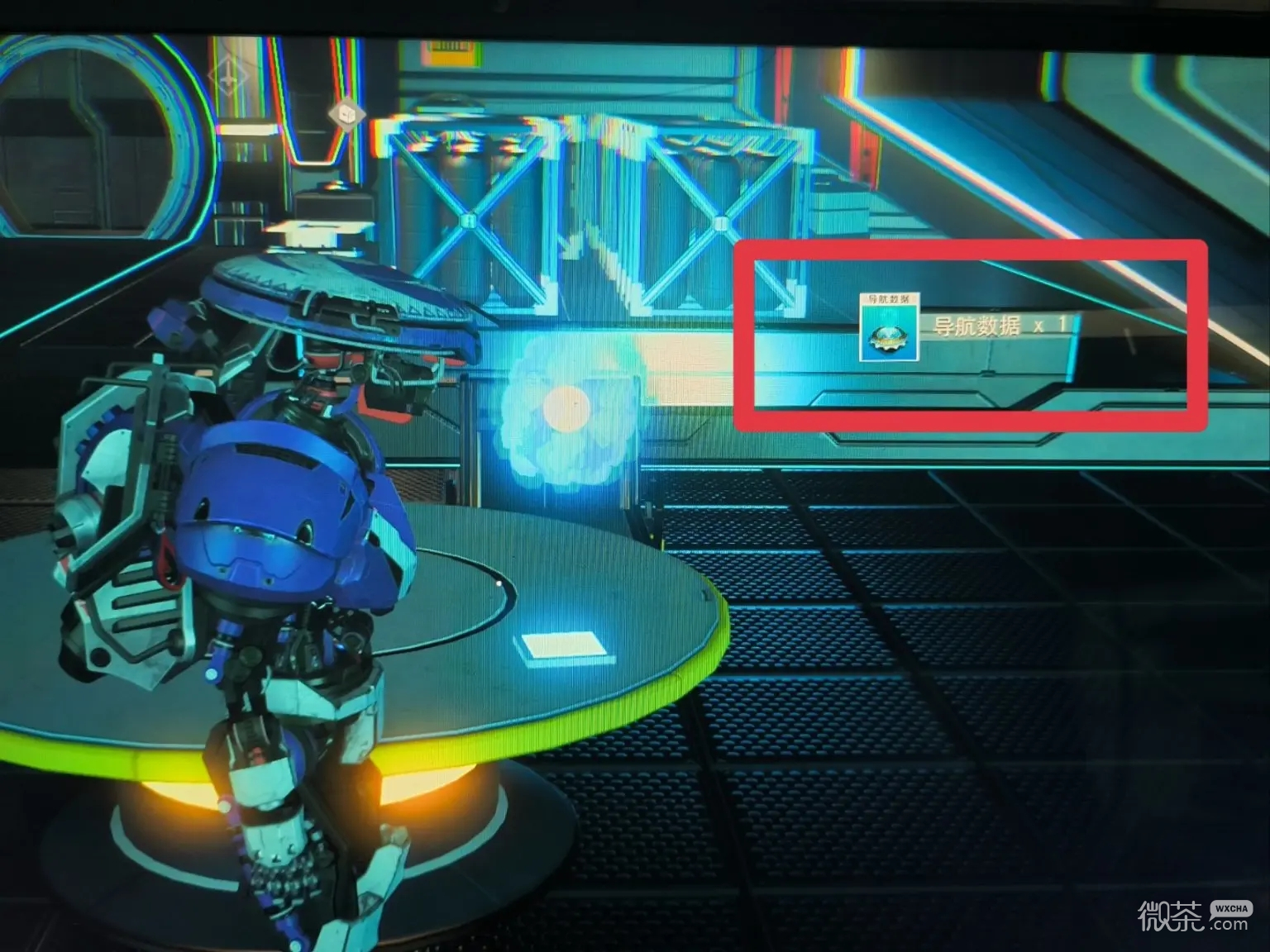 如圖,在桌子上會隨機刷新出藍色方塊,使用即可獲得一個導航數據,不是每一個空間站都有,可以多跑幾個。