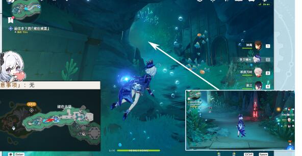 5,然後跳進下方的泉水,潛到水底,順著漩渦前進。