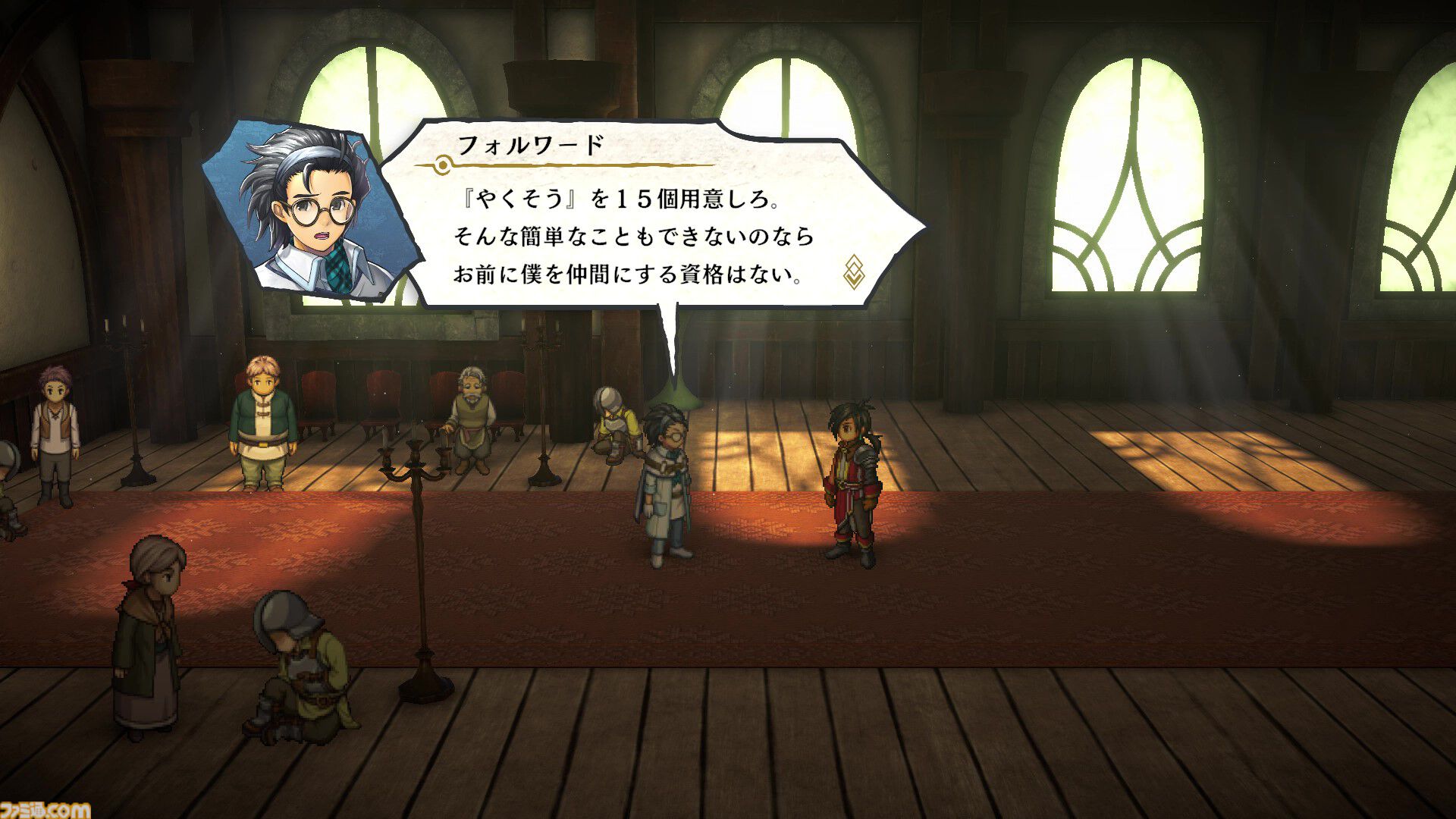 將15個野草帶到奧特菲爾登村的會議廳(地圖左上方)交給福爾瓦德後加入隊伍。