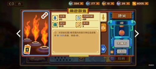 33、地火,職業爲科技,對目標位置3格範圍內的敵方單位造成每秒100%傷害,持續4秒。