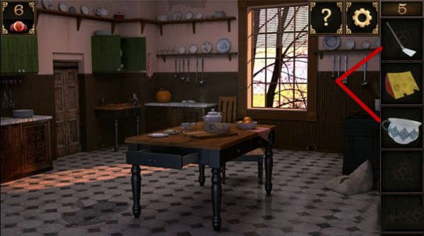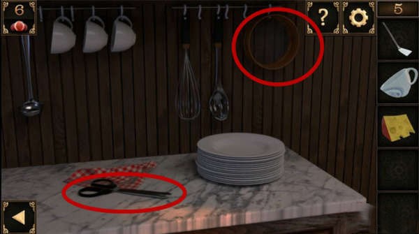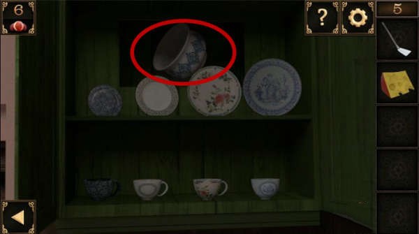 8、用鑰匙打開門右邊的櫥櫃,將之前收集到的杯子放上去,調整盤子和杯子的順序即可得到一個大碗