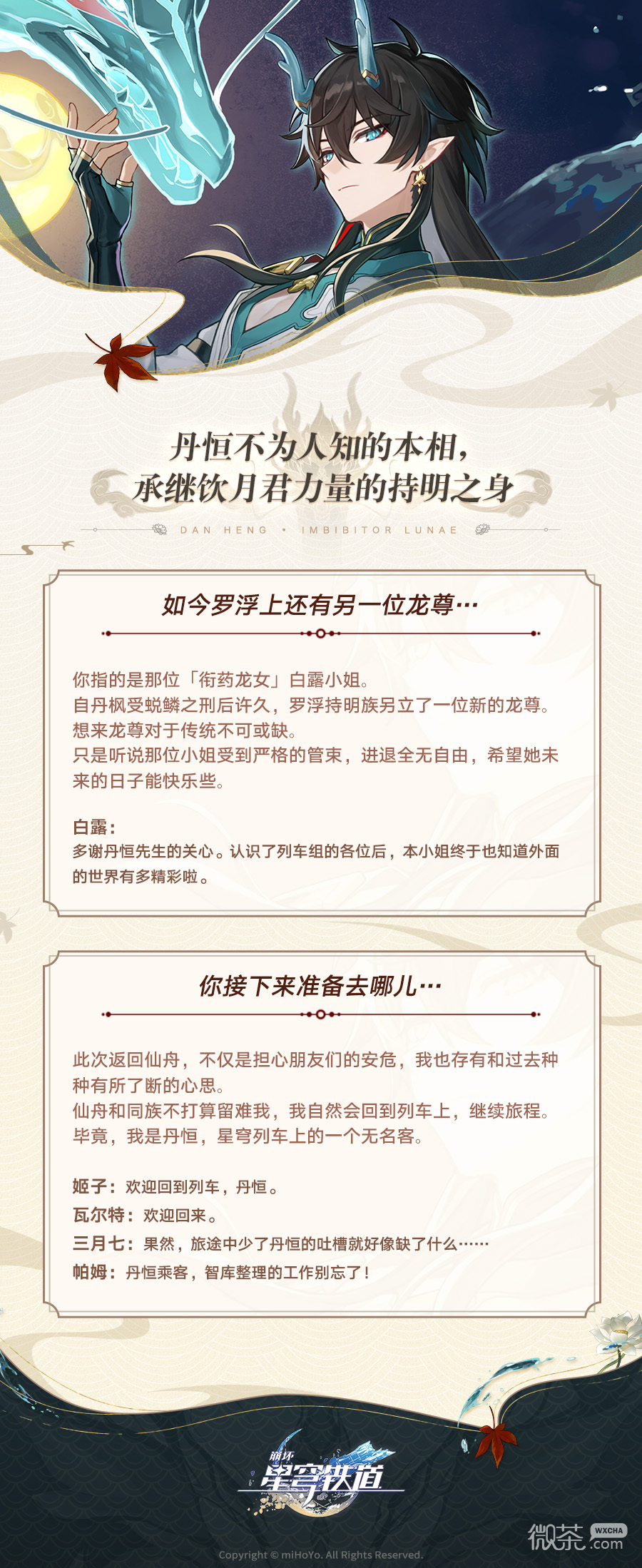 抱歉,讓你驚愕了吧…這額頂的龍角,是羅浮龍尊自古以來的傳承。但我依舊是我,請繼續用「丹恒」這個名字稱呼我就好。