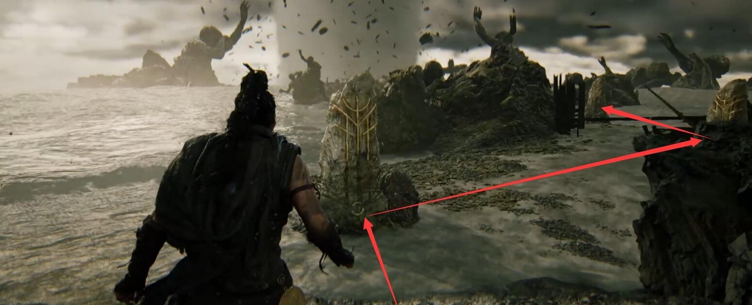 4.依次抓石碑圓環,然後沖另一個石碑,一直往前走,見到巨人就會觸發劇情。