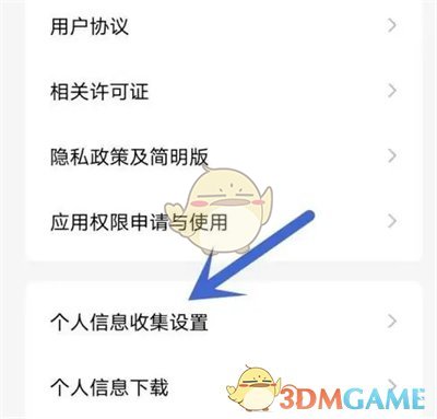 2、頁面跳轉後,在其中點擊“個人信息收集設置”這一項進入。
