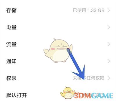 5、在應用權限頁面裏點擊選擇“存儲”這一項。