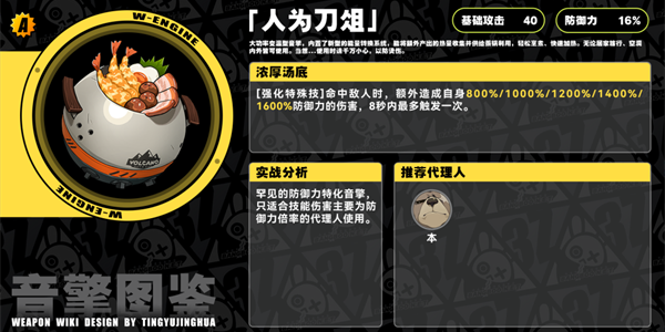 罕見的防禦力特化音擎,只適合技能傷害主要爲防禦力倍率的代理人使用。