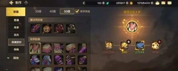 4、獲得的深淵精粹是非常重要的史詩裝備制作材料,1000個相同部位的深淵精粹可制作指定部位的史詩裝備。點開主面板上的制作-裝備,選擇深淵派對即可看到各種裝備制作所需要的材料。