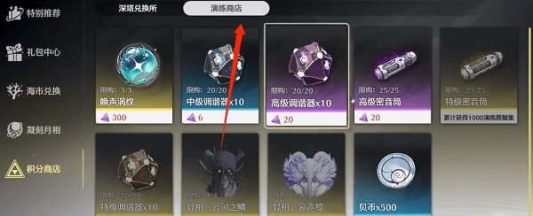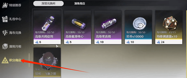 2、進入商店,打開【積分商店】,在【深塔兌換所】裏,每月可以最多兌換50個【高級密音筒】。