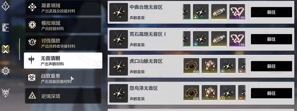 7、周期挑戰中的【討伐強敵】、【無音清剿】和【戰歌重奏】中都會有密音筒獎勵,其中【無音清剿】獲得密音筒獎勵最多,但消耗的體力較多。