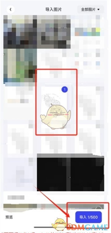2、相冊頁面選擇需要轉爲pdf的圖片並點擊導入。