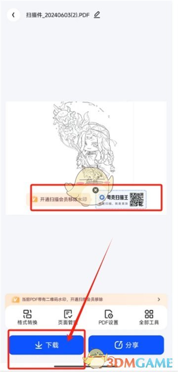 4、可以選擇保留誇克掃描王的水印或者開通會員刪除水印,設置完成後點擊下載即可生成pdf。