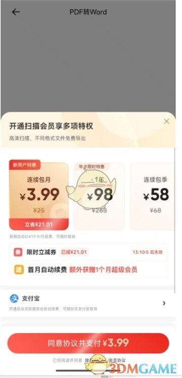 5、需要開通誇克掃描王的會員才能享受pdf轉word功能。