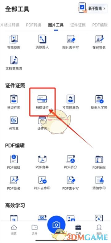 1、打開誇克掃描王app,點擊主頁的工具選項。