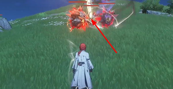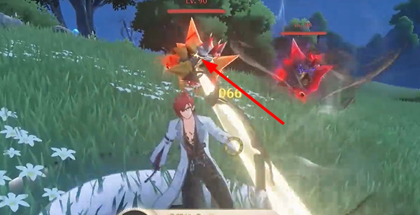 1、我們來到下面這個地方之後就能看到一個紅色的怪物。