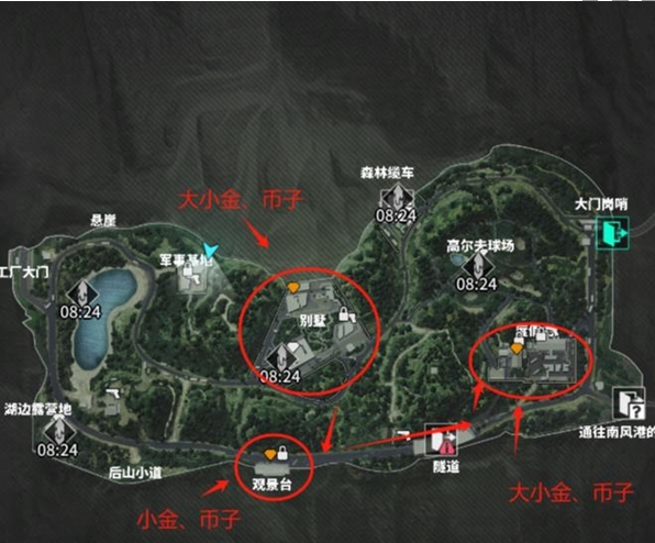 2、拿走鑰匙可以保證其它玩家第一時間無法開啓上鎖房間,而玩家可以去觀景台、度假村人少的地方搜一波,最後再回別墅收尾撤離。