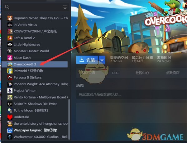 2、找到左側遊戲列表中你想要隱藏的【遊戲】。