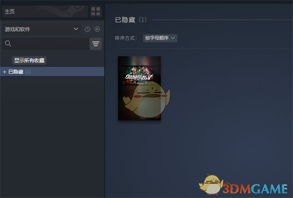 3、由此就跳轉到了【庫】的界面,可以看我到我們電腦的【已隱藏遊戲】了。
