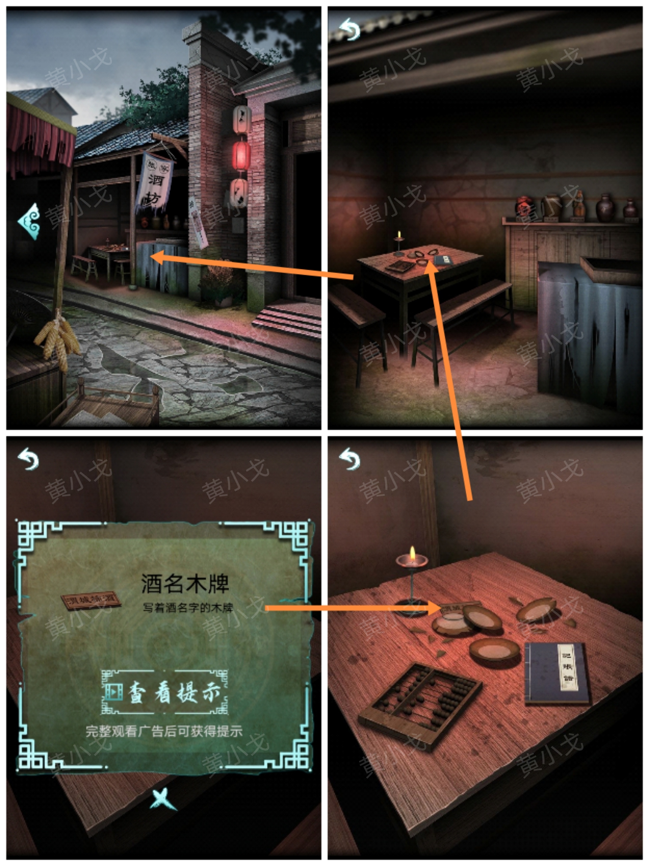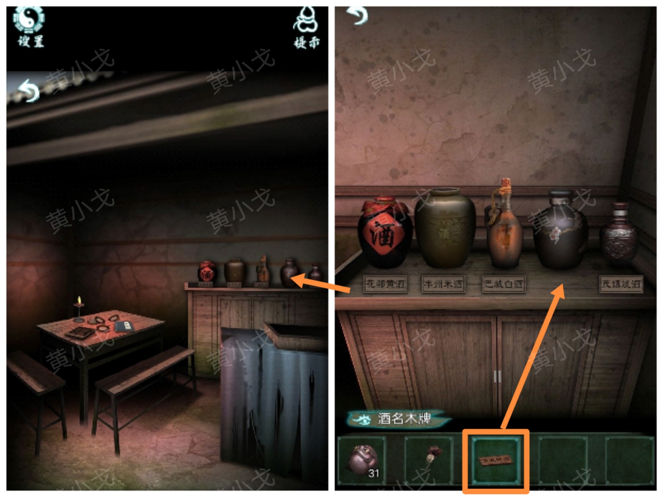 7.根據賬簿上的線索,調整酒瓶至對應的木牌上(
