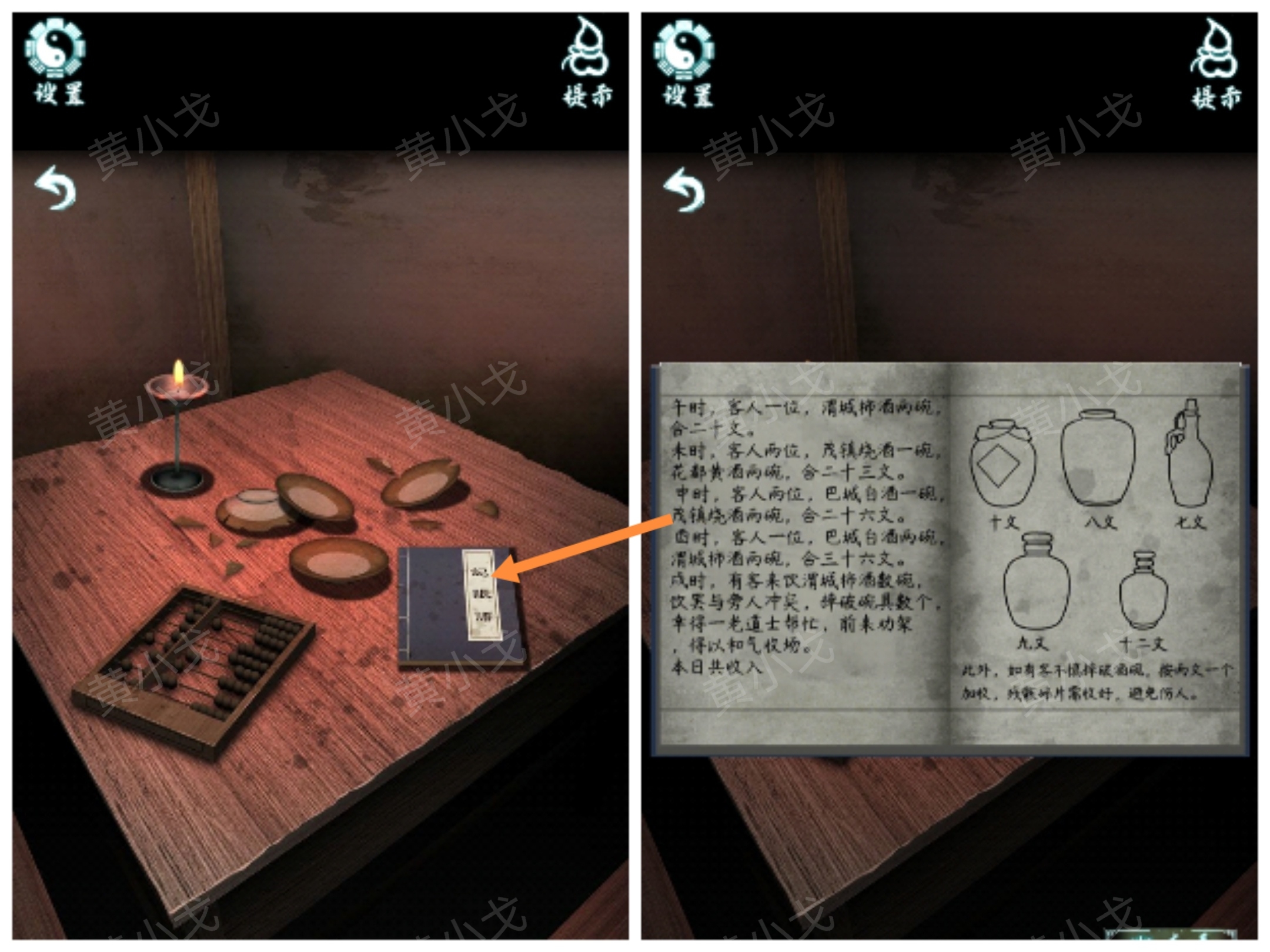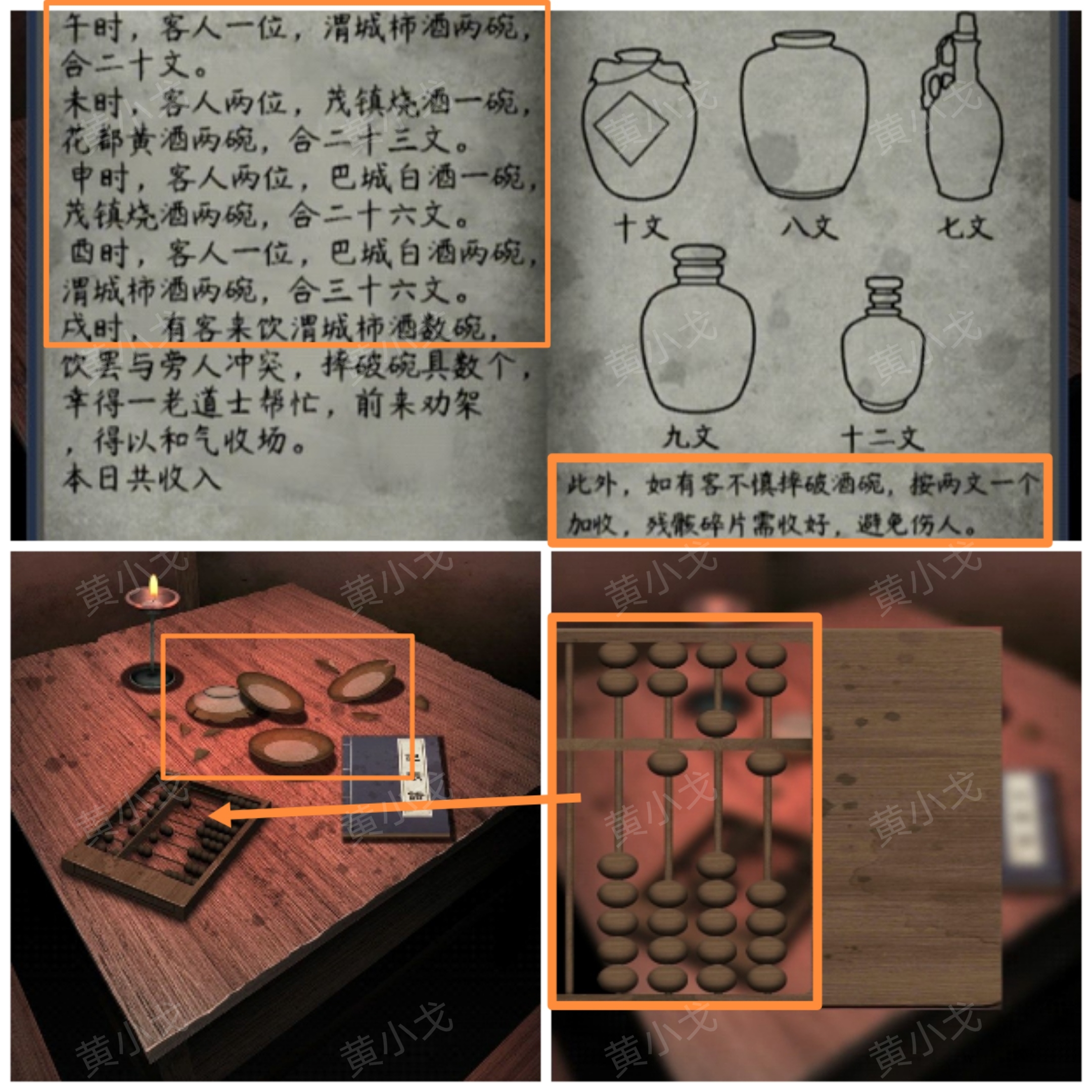 4.點擊算盤,根據賬簿上的線索,加上桌子上的碗,算出本日收入(