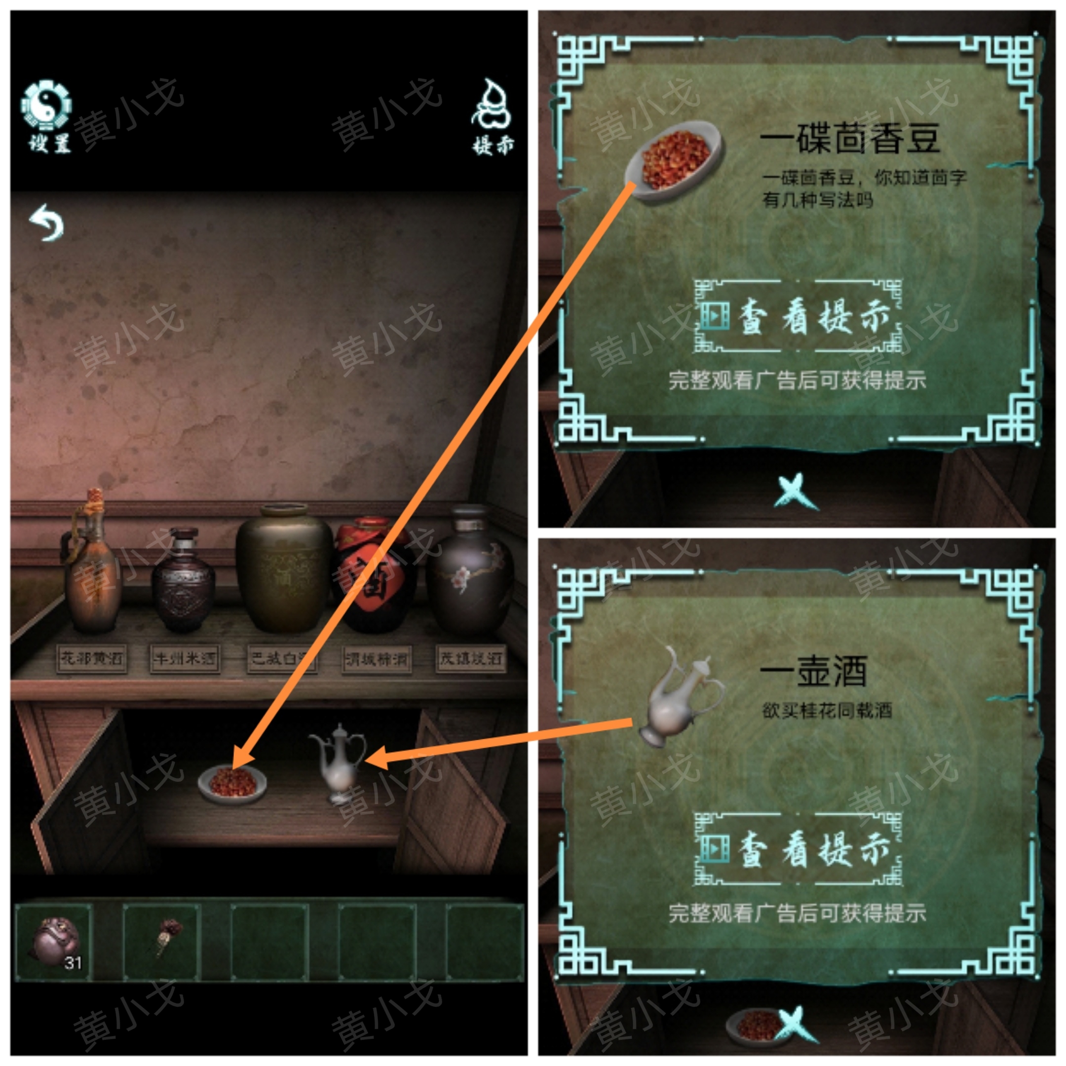 8.打開櫃子,獲得【一壺酒】和【一碟茴香豆】