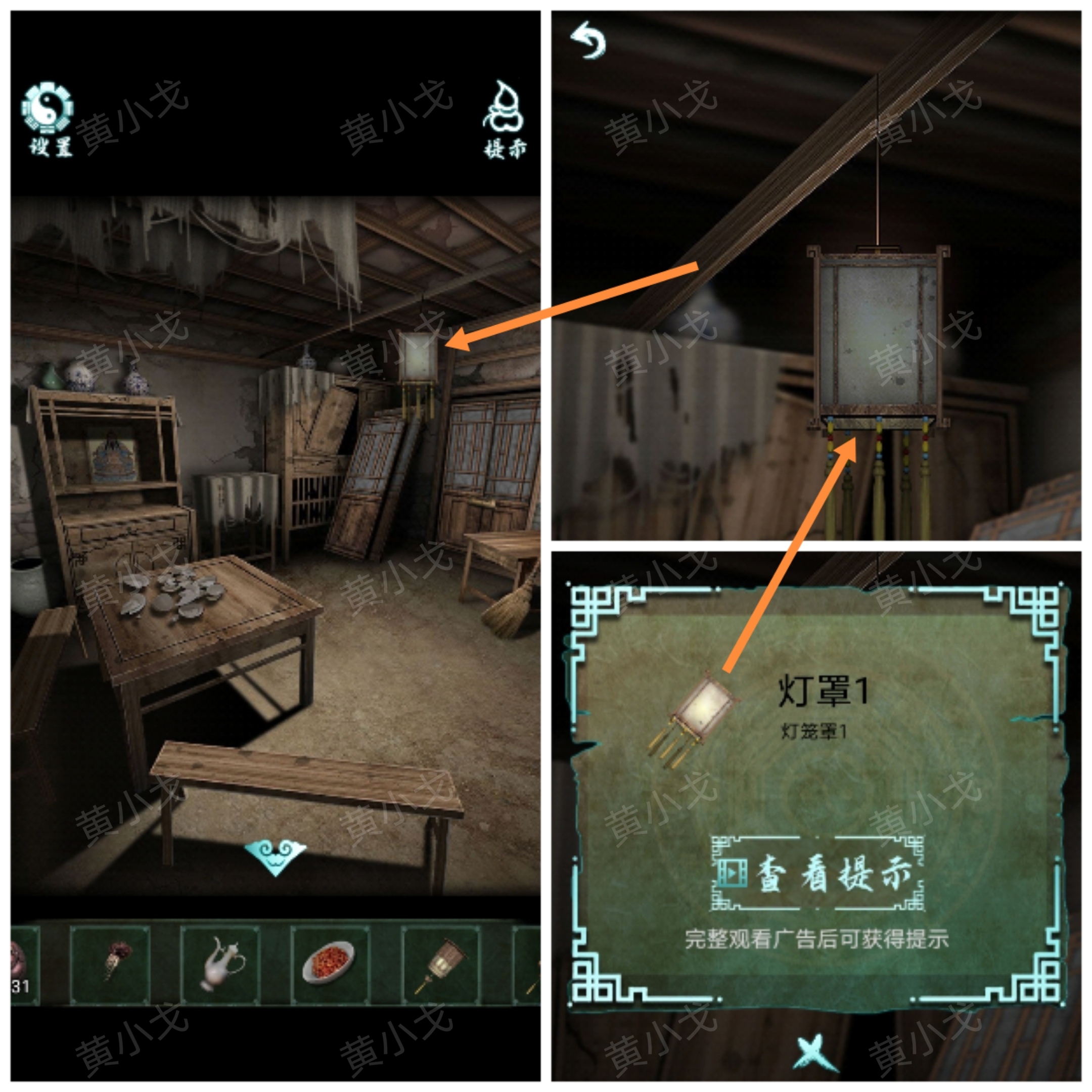 10.點擊房梁上的燈籠,獲得【燈罩2】