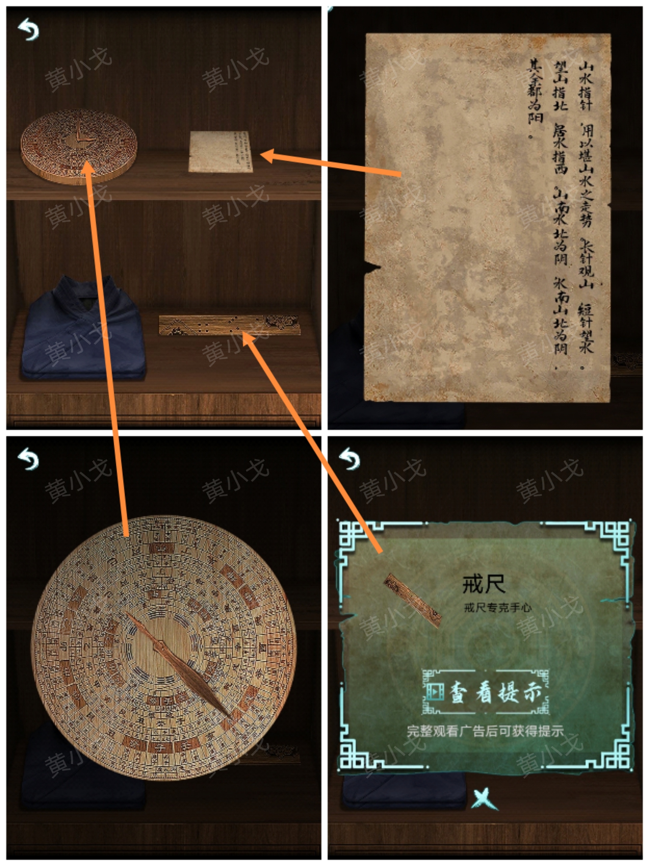 23.打開衣櫃,獲得【羅盤】和【戒尺】,查看紙條內容