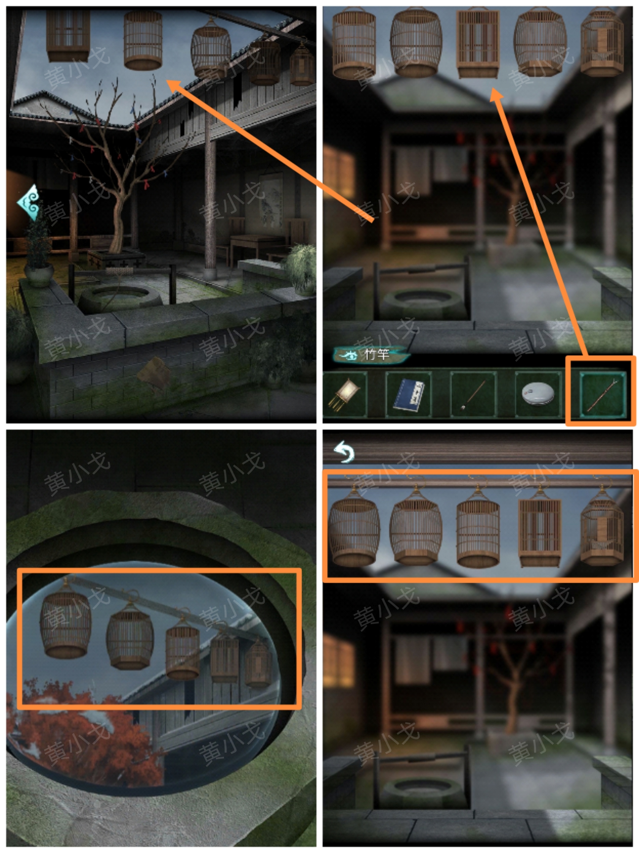 7.點擊挂著的燈籠,使用【竹竿】;根據井裏的線索,正確擺放燈籠的位置