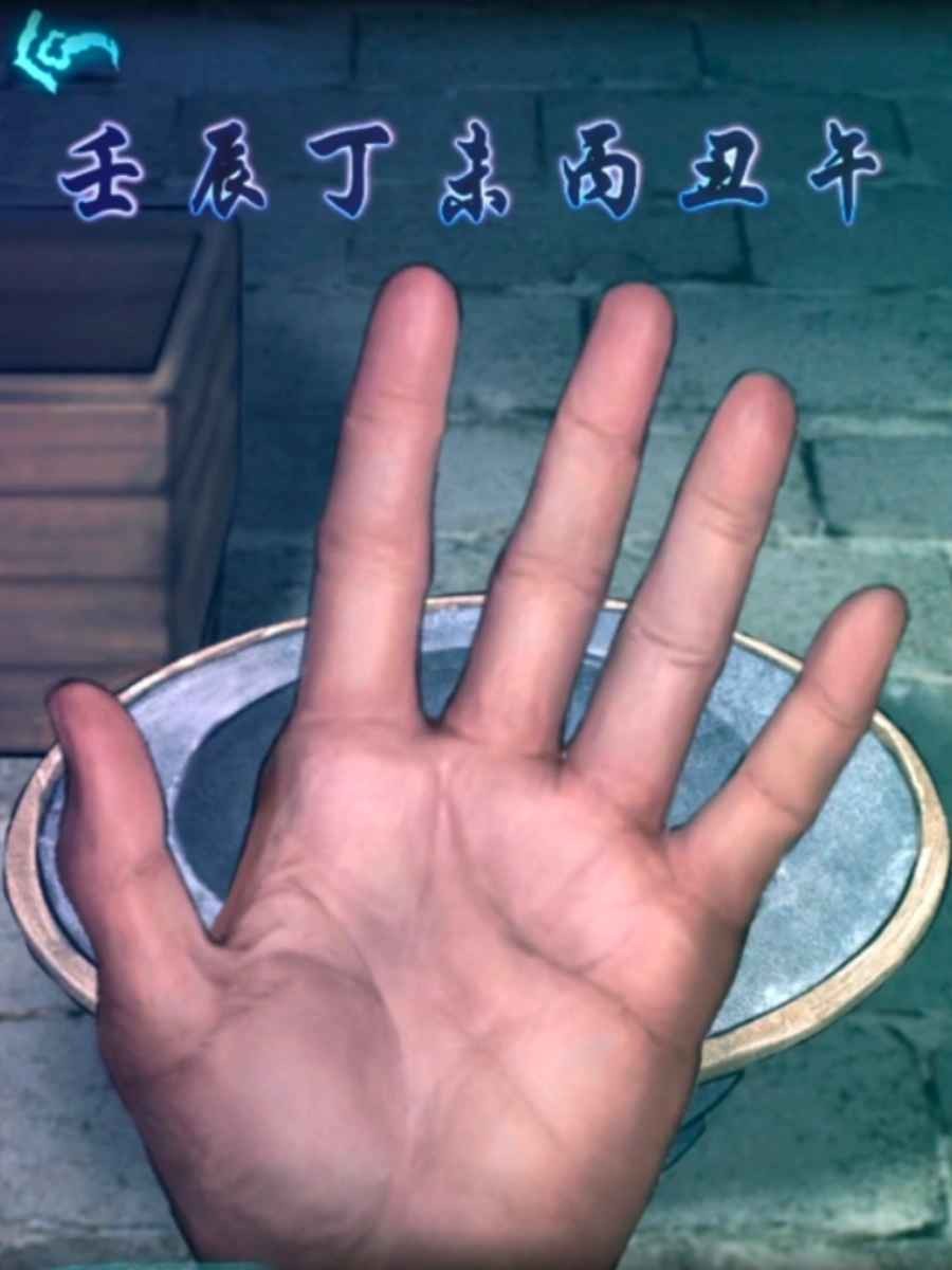 7、進入正廳,根據線索(直線相連的兩個數相差5)打開左邊櫃子,找到了一些元寶和紙錢。在火盆裏放入:3個元寶和1張紙錢,掐指,切換場景,桌子下方的框裏找到了一塊香。左邊櫃子裏找到了一個印香流程。