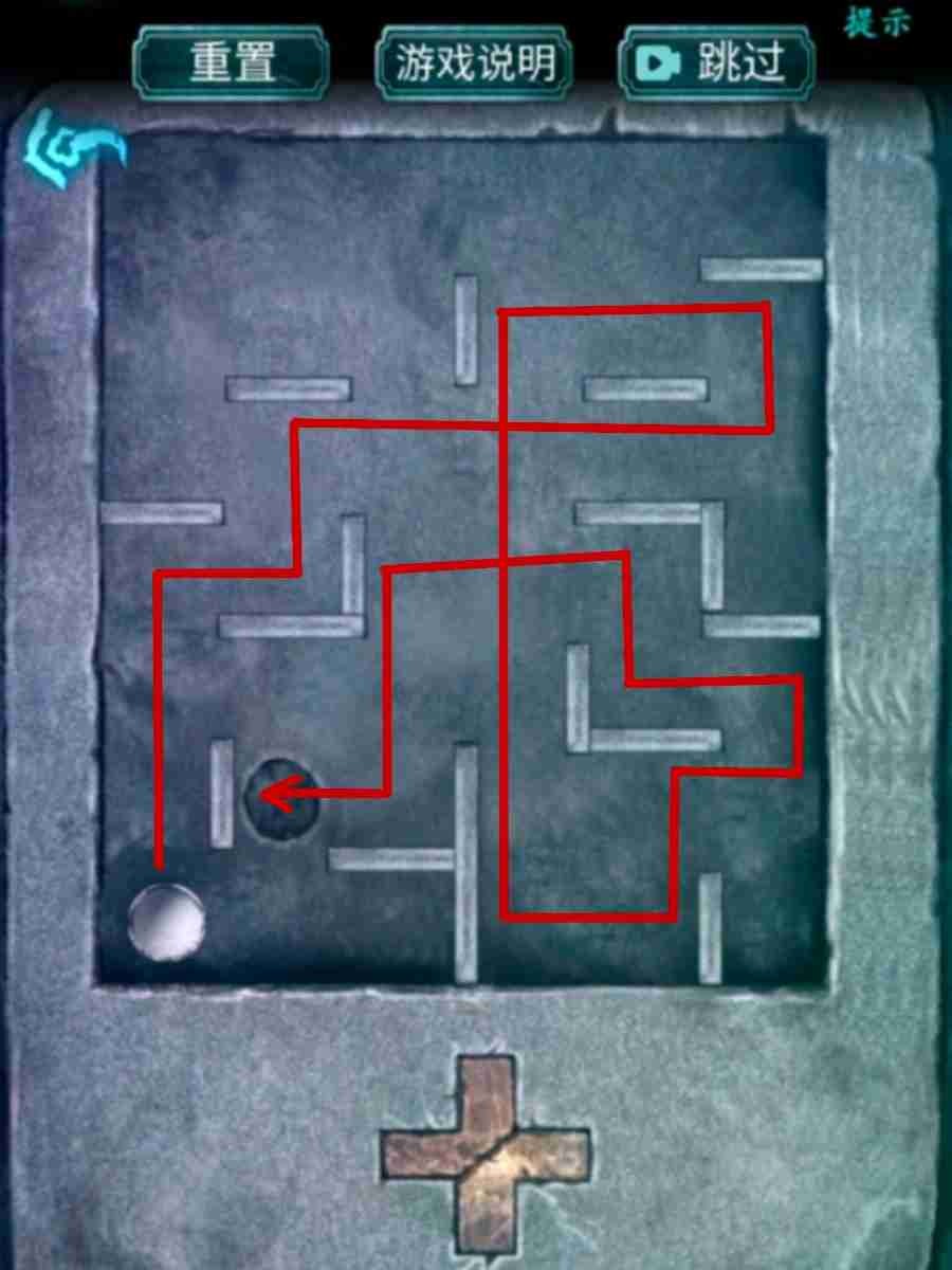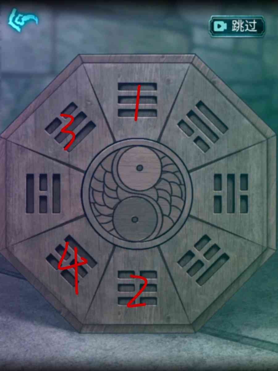 4、你往右走了兩次,來到了井邊。你用刮刀刮下了石頭上的朱砂,並獲得了一條提示。你完成了左下方小盒子上的遊戲,獲得了一枚銅幣。然後你回到了左邊,根據窗戶上的線索,將銅幣放在門邊的佛像前,獲得了一張符紙。