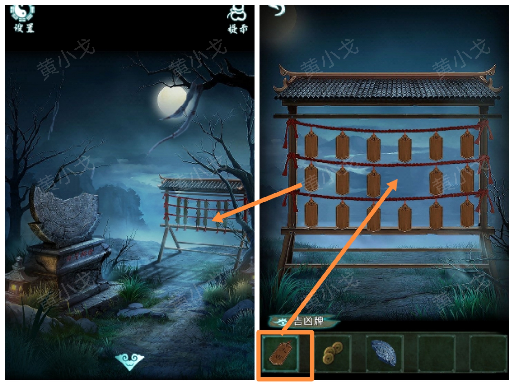 5.(崖)點擊挂木牌的架子,挂上【吉凶牌】