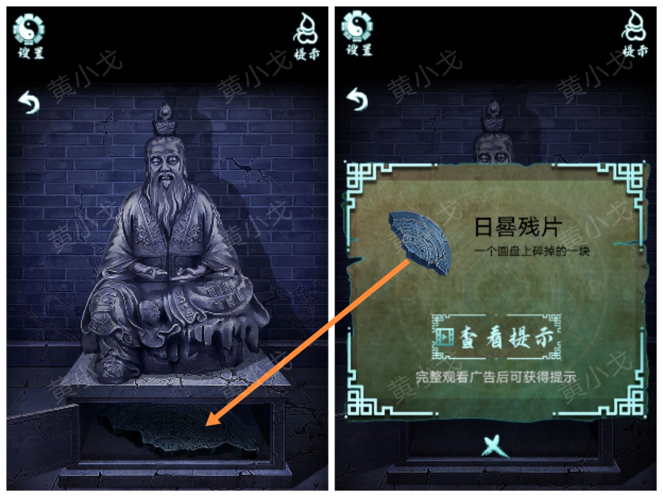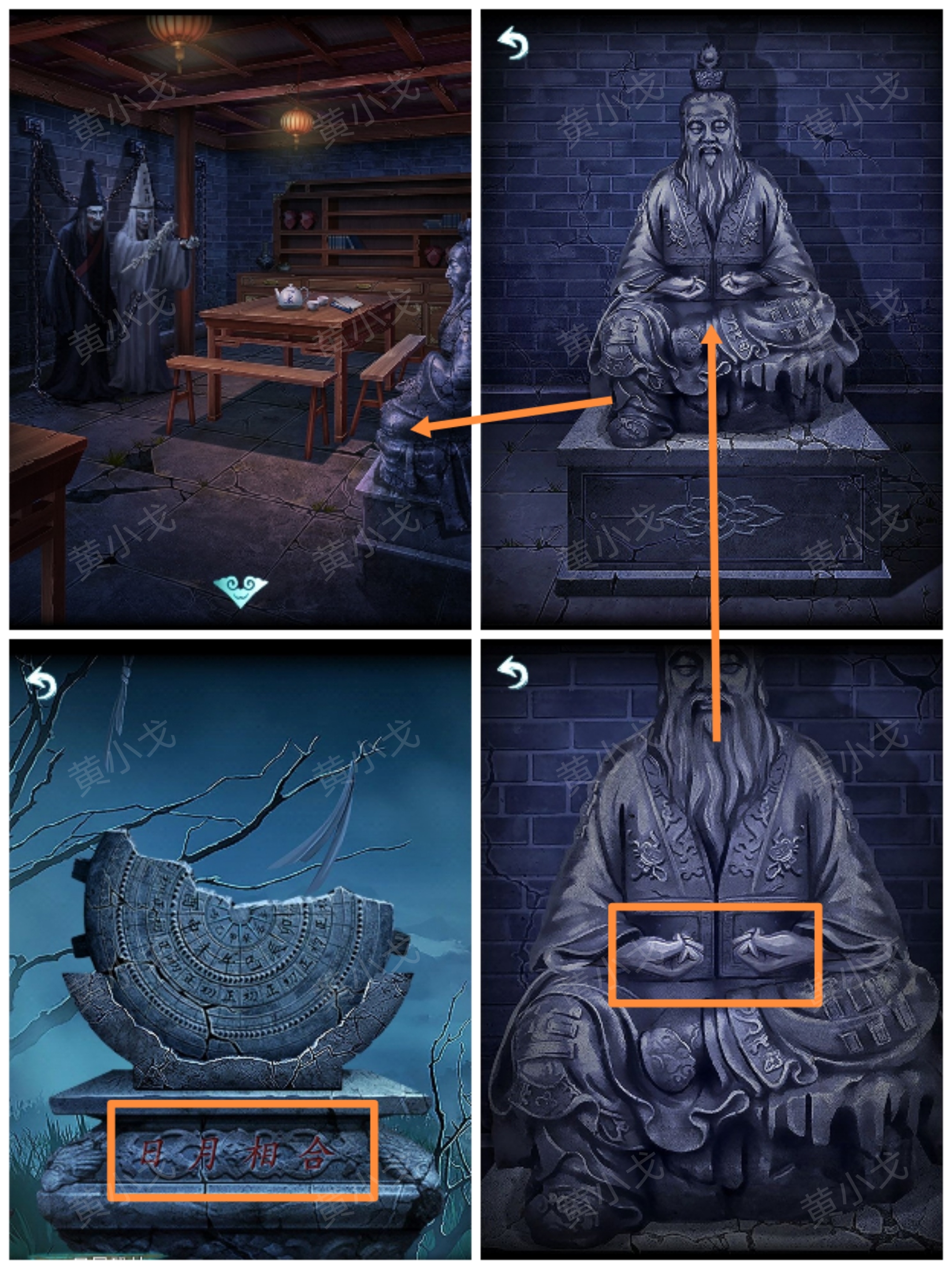 9.點擊雕像,根據書上的線索和日晷處的線索(日月相合),調整雕像的手勢(左手-日君訣、右手-月君訣)