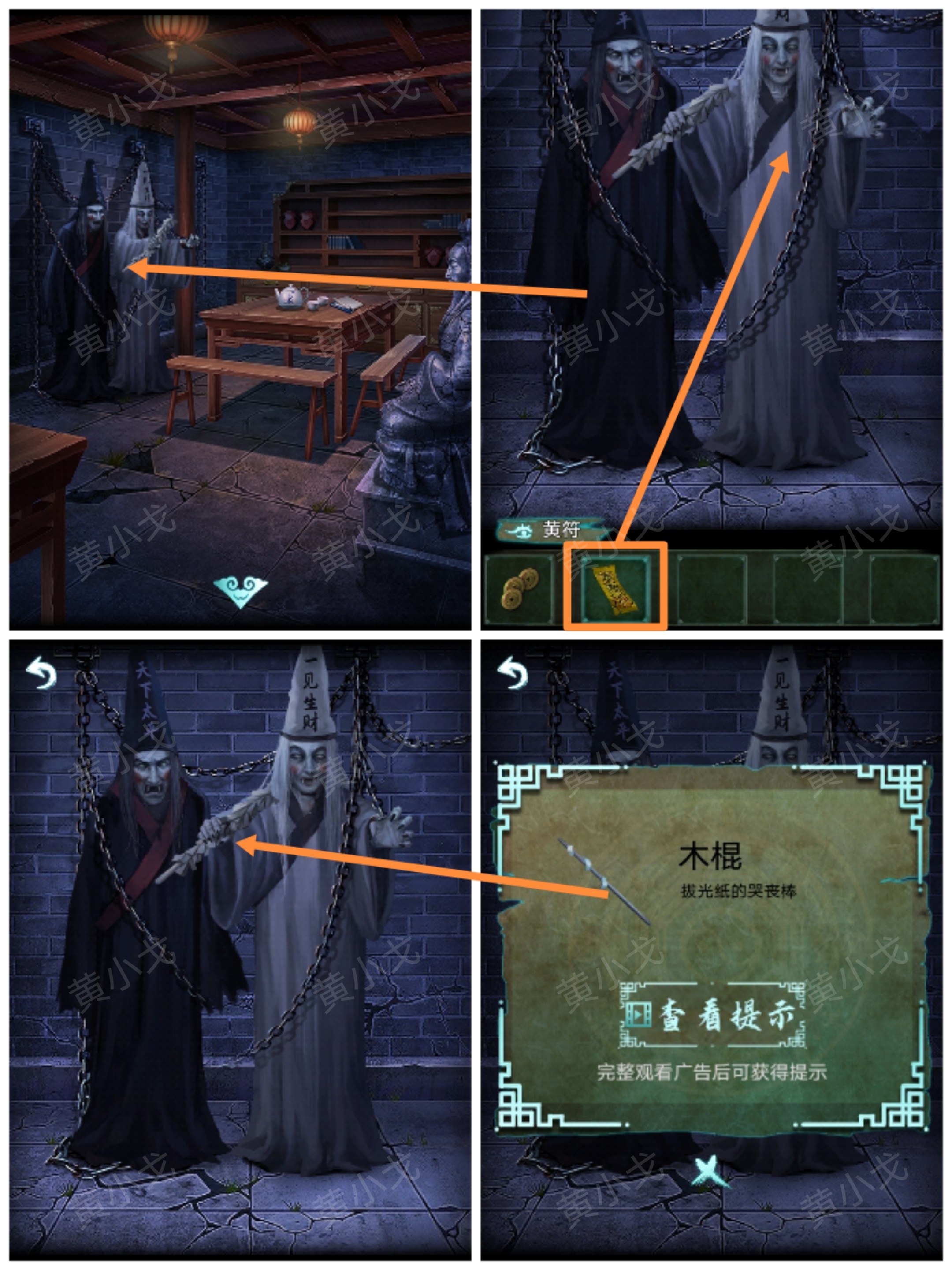 11.點擊黑白無常,給白無常貼上【黃符】,獲得【木棍】
