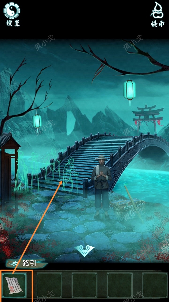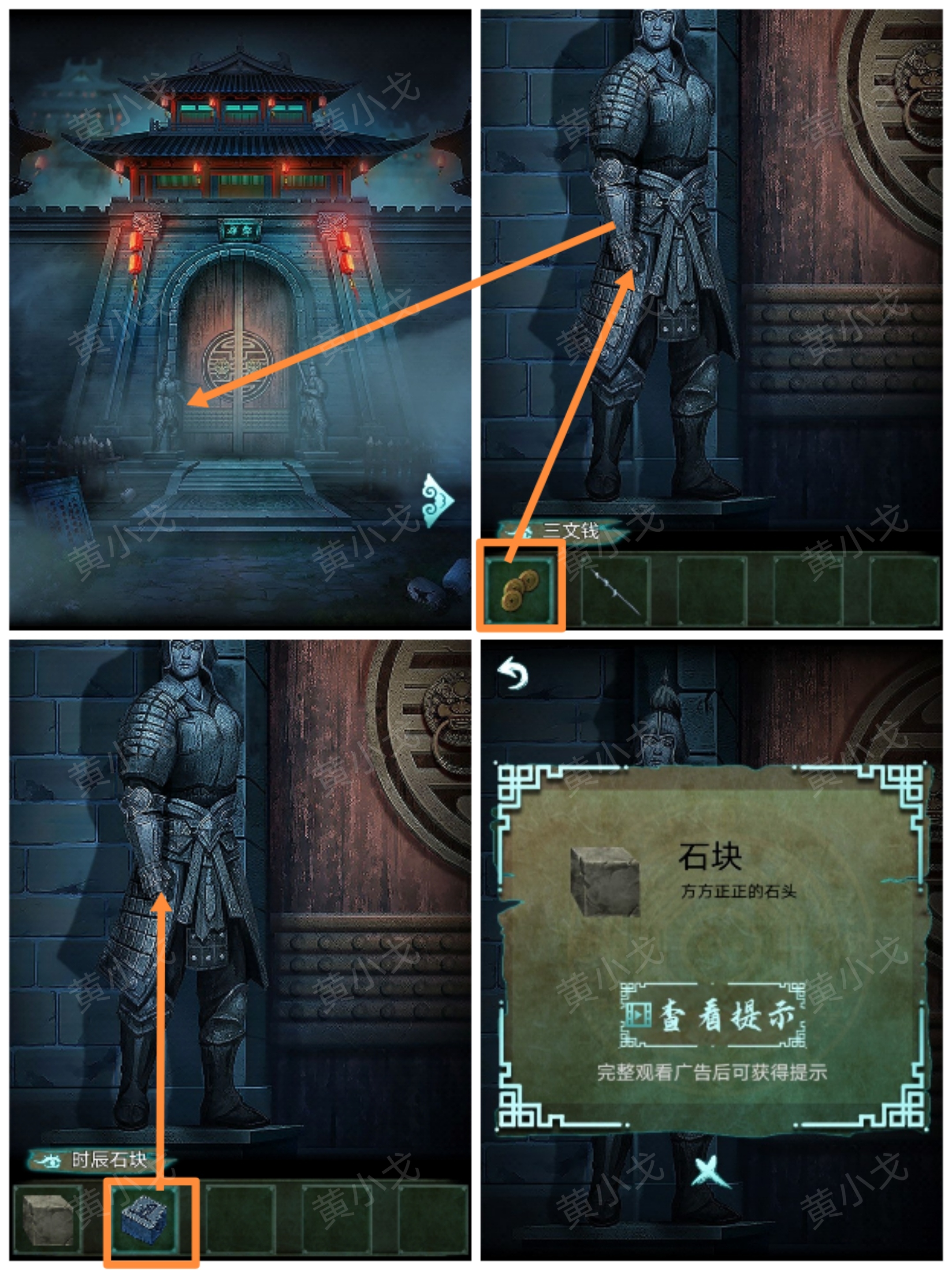 14.點擊左邊的士兵,拿【三文錢】給他,獲得【石塊】;拿【時辰石塊】給他進入酆都