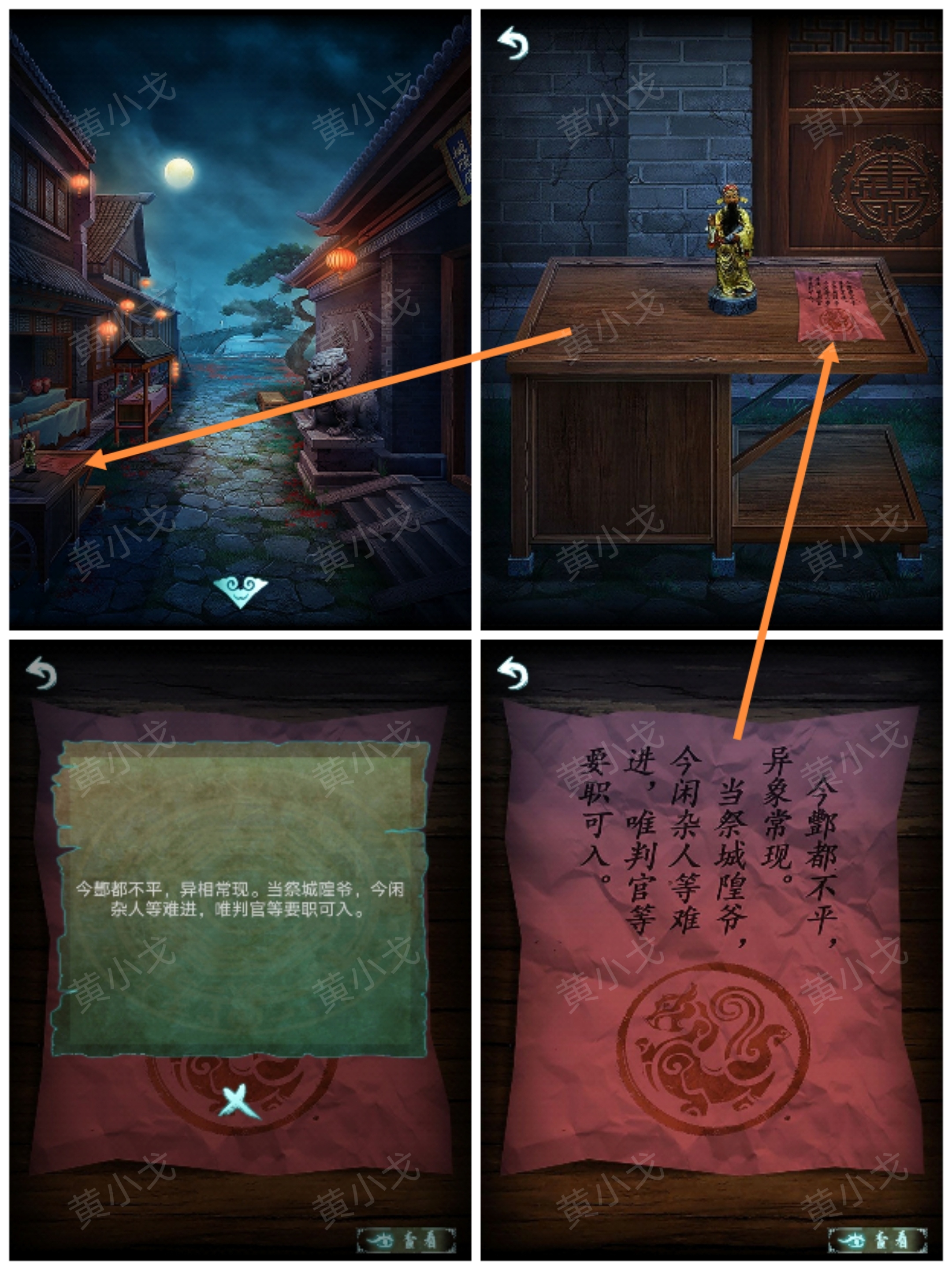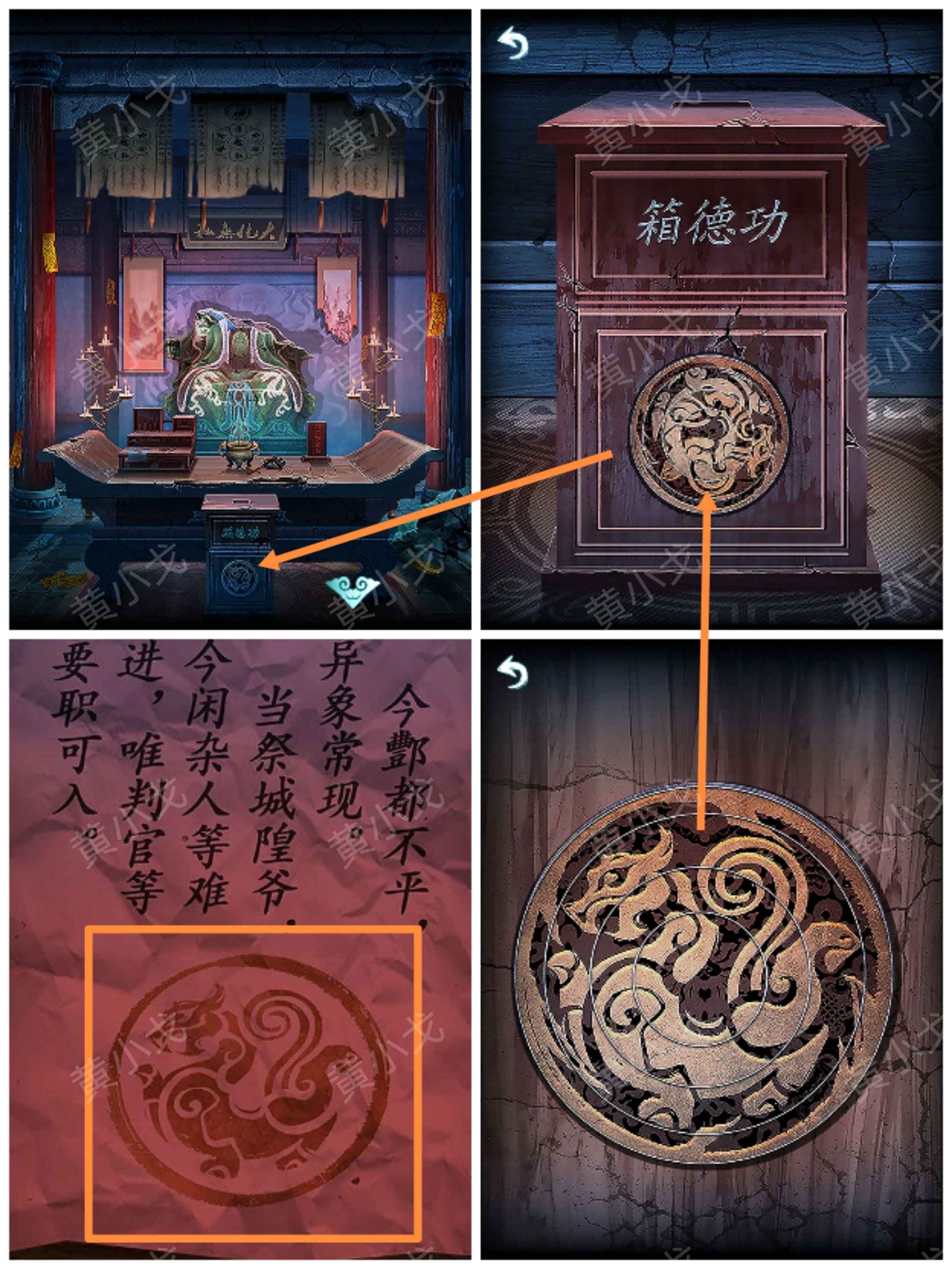 1.(城隍廟)點擊功德箱,根據紙條上的圖案,完成拼圖