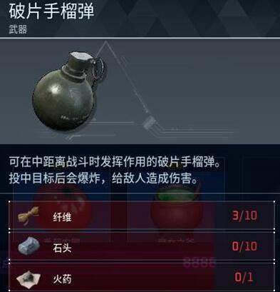 破片手榴彈屬于武器類,科技31級解鎖,玩家提供材料後便可進行制作。