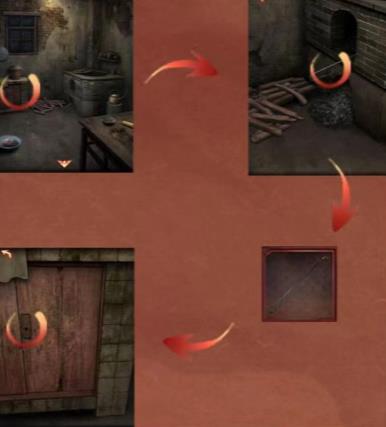 7、從竈台上拿到燒火棍,用燒火棍拉開廚房中的櫃門,獲得木撮瓢和刷把,對打濕的門神使用刷把,打開房間門。
