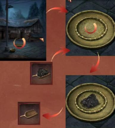 28、從廚房打開的櫃子裏拿到木撮瓢,用木撮瓢鏟起竈台下的草木灰,獲得粗草木灰。