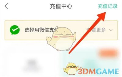 3、接下來在進入的充值中心頁面裏右上方有一個“充值記錄”入口,看到後在上面點擊打開就可以查看到自己在熊貓看書裏的充值記錄詳情內容了。