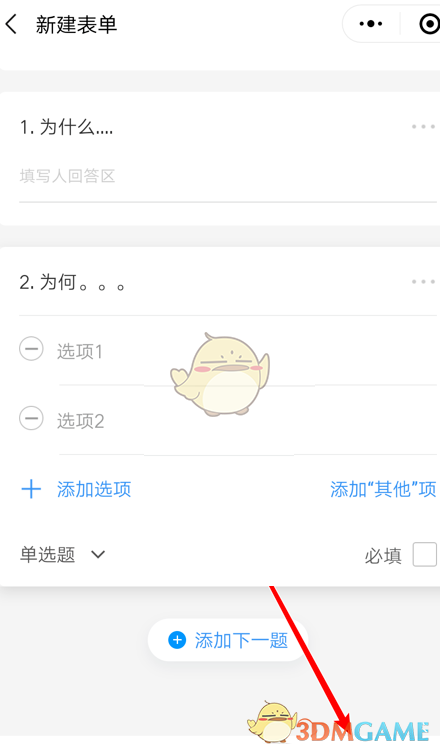 4、輸入你要提問的問題,如果問題較多,可點擊“添加下一題”: