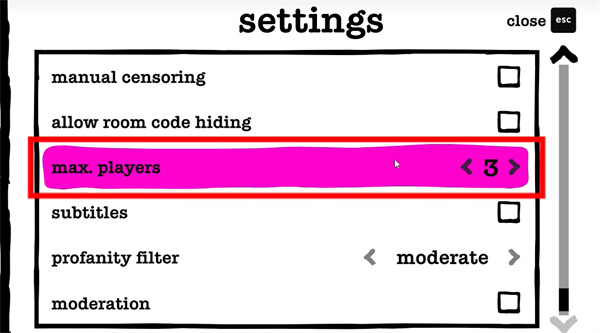 接著進入遊戲主界面,這裏需要往下拉,拉到max.players選項,把數量調整到參與者的數量。