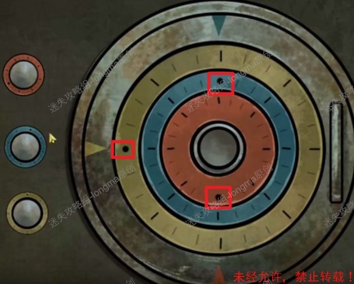 72.立在椅子上開啓天花板上的機關,進行遊戲(點擊左側按鍵,使三個圈子的黑點對應同顔色的表針)。7272.1