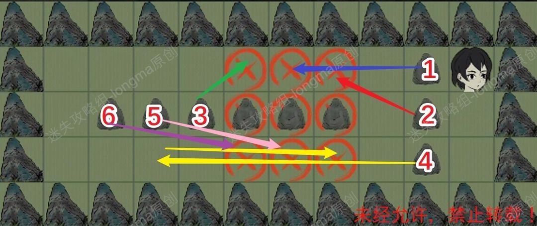 24.來到山裏,向右走,點擊山裏的大石頭,進行遊戲(將石塊移到叉號部位),開啓洞邊。