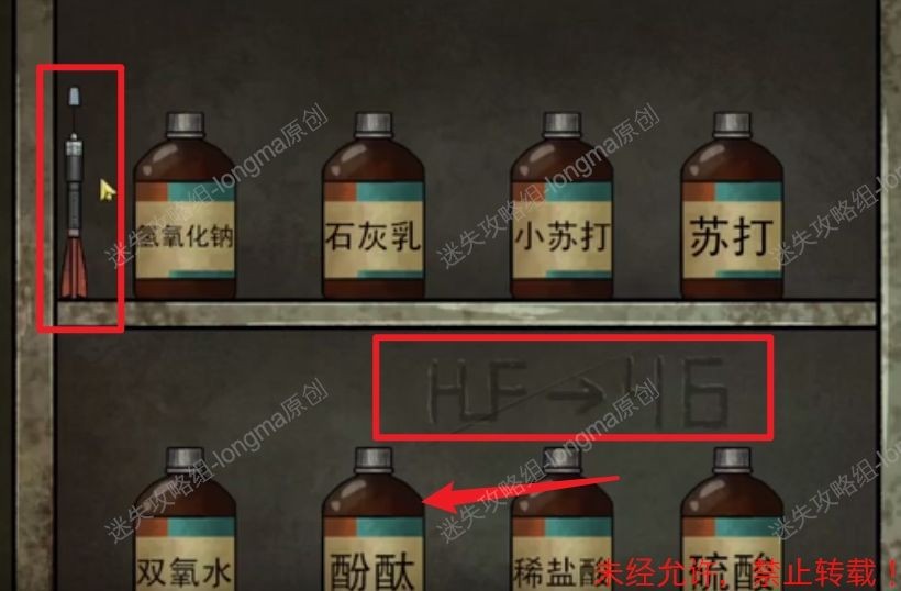 74.觀察左邊木櫃,獲得【麻醉針】,應用【空滴管】提取酚酞液態,觀察櫃子上提示。7474.1