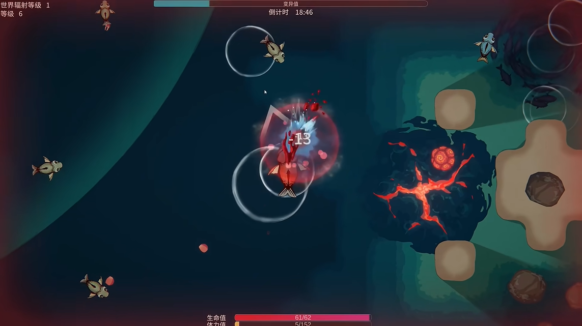 3、我們在遊戲中扮演一只普通的魚類,進入到了危機四伏的核汙染海域。