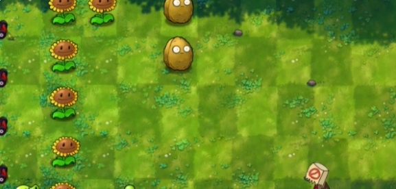 2、先在左側種植一列向日葵,在右側種植兩個堅果。