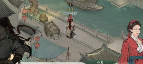 2、接著上前和NPC紅芙進行對話,跟隨任務指引來到河邊觸發劇情。