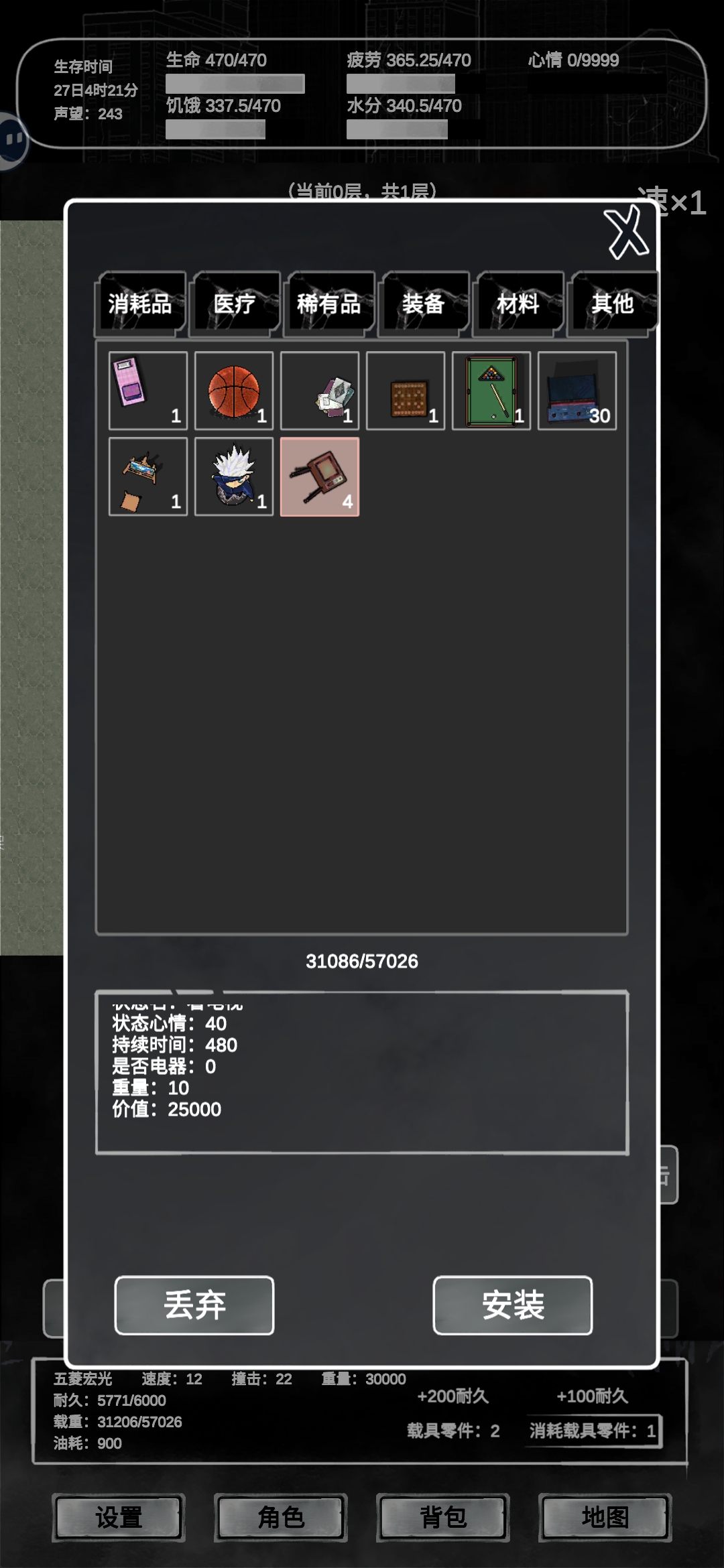 3、開局爭取快速到圖二,找工地的卡車(駕駛技能200才行)。有了卡車後就快速撞喪屍,升級並且加聲望。之後就是等敏捷拉到280。裝備有那個女仆裝就能去全圖最肥的車站。進去前流速拉到一,食物都吃了,快樂拉到盡可能高。進入後繞邊緣跑一圈,把那個離你最近的那一類怪幹掉就行。其它的怪不用管。剩下就是一邊摸一邊跑。車子就打包太陽能,高級跑車,越野車啥的,其它都拆了。畢竟碾壓喪屍挺費零件的。